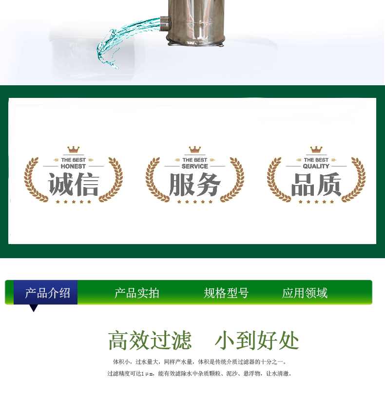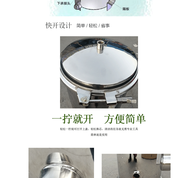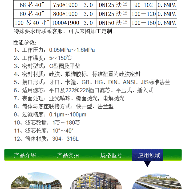 不锈钢大通量PP滤芯精密过滤器 产品说明: 本产品为不锈钢大通量PP滤芯精密过滤器,专为高效、稳定地去除水中杂质而设计,广泛应用于饮用水处理、工业用水净化、污水处理等领域。该设备采用高品质不锈钢材质制造,具有耐腐蚀、寿命长、维护方便等优点。 作为保安过滤器,它也被称为精密过滤器,其核心优势在于高精度的过滤能力。本设备可实现5微米和1微米两种过滤精度,能够有效去除水中的泥沙、悬浮物、颗粒物质等杂质,保障后续设备的正常运行和水质安全。 “大通量”是本产品的另一显著特点。相比传统过滤设备,本产品在保证高过滤精度的同时,具备更大的流量通过能力,适用于大流量、高负荷的过滤需求,提升整体系统的处理效率。 此外,设备内部采用PP滤芯结构,具有良好的化学稳定性,适用于多种水质环境。安装简便,更换方便,便于日常维护与管理。 总之,不锈钢大通量PP滤芯精密过滤器集高效过滤、大通量处理、精密除杂于一体,是现代水处理系统中不可或缺的重要设备。无论是家庭用水还是工业用水,都能为您提供安全、洁净的水源保障。